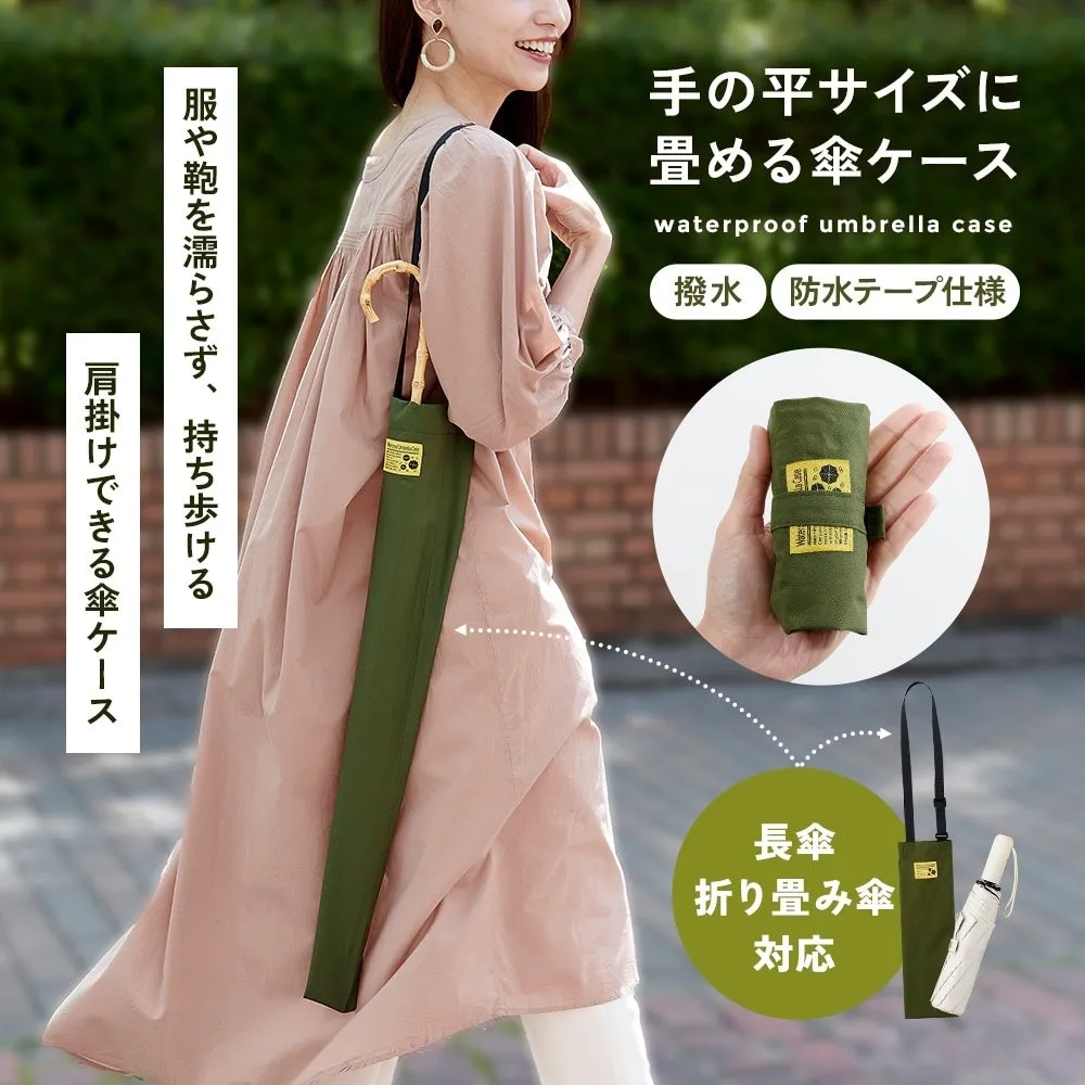 この傘ケースは、使わない時は手のひらサイズに折りたたみ可能で、バッグのすき間に忍ばせておける便利さが魅力です。持ち歩く際にもかさばらず、サッと取り出せるのがポイント。価格は1,430円(税込)で手に入るので、コストパフォーマンスも優秀です。