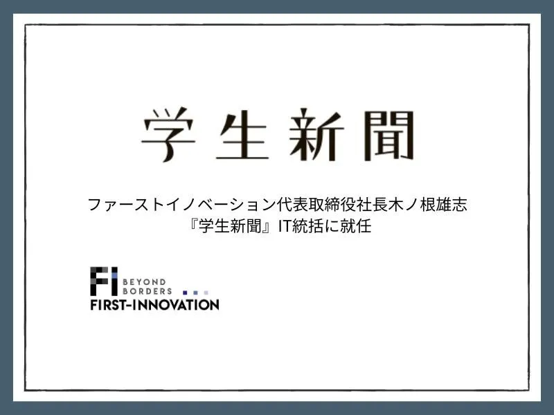 ファーストイノベーションの代表取締役社長、木ノ根雄志氏が最近、大学生向けのフリーペーパー『学生新聞』のIT統括に就任したことが発表されました。この新たな役職を通じて、木ノ根氏は学生メディアのデジタルトランスフォーメーション(DX)を強化し、さらなる発展を促進する意向を示しています。