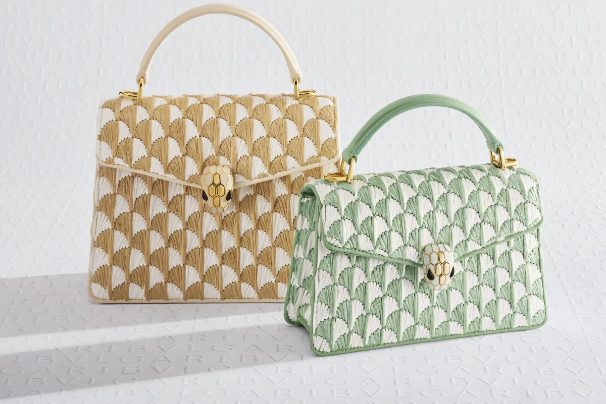 クリエイティブディレクターであるメアリー・カトランズが手掛けた本コレクションでは、ブルガリの象徴的なモチーフ『セルペンティ』や『ディーヴァ ドリーム』、さらには『トゥボガス』が新たな形での美学を体現しています。特に、古代ローマからインスパイアを受けた“カラ”パターンを用いたバッグは、ブルガリが修復したカラカラ浴場のモザイクに触発されています。このパターンは、フェミニニティと普遍性を象徴するものとしても知られています。