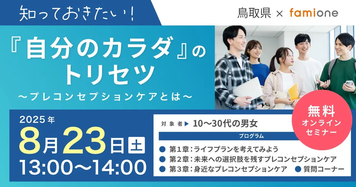 鳥取県が2025年8月23日(土)に、初めてとなる若者向けのプレコンセプションケアに関するオンラインセミナーを開催します。この名も「知っておきたい!『自分のカラダ』のトリセツ~プレコンセプションケアとは~」です。これは若い世代を対象にした、心身の健康意識を高めるための重要なイベントです。