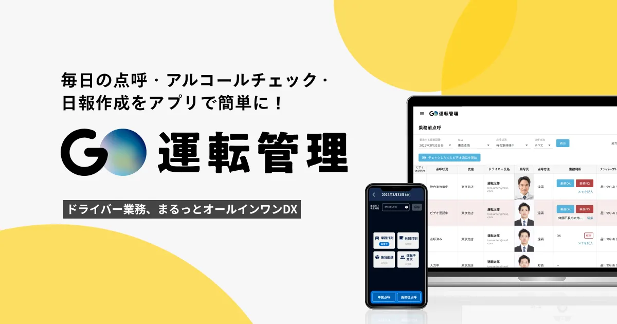 GO株式会社は、タクシー配車アプリ『GO』やAIを活用した安全運転支援システム『DRIVE CHART』で知られる企業です。同社はこの夏、業務用車両に特化した運転管理支援アプリ『GO運転管理』の提供を開始することを発表しました。この新サービスにより、企業は運転業務に関連する点呼から日報作成までをスマートフォンひとつで簡単に管理できるようになります。