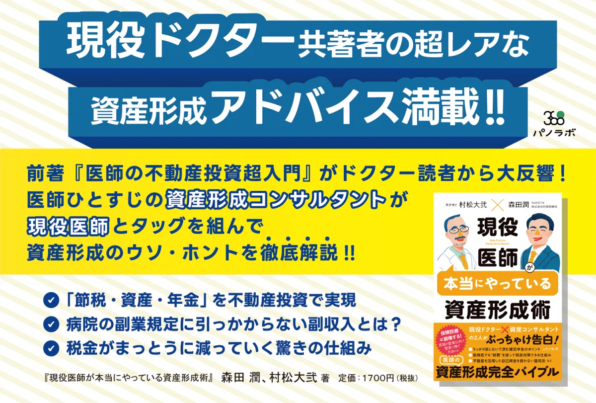本書では、著者の森田 潤氏と共著者の村松 大弐医師が、実際のデータや実例を基に医師が陥りやすい“お金の落とし穴”を可視化し、医師の資産形成に役立つ具体的なノウハウを体系化している。