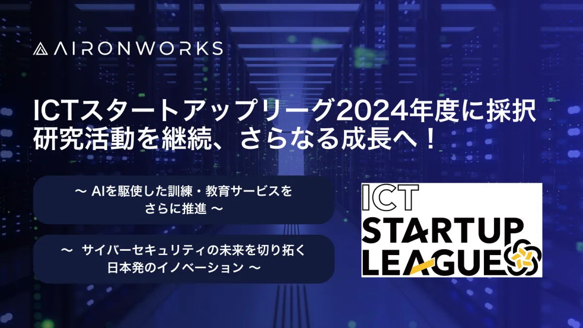 AIを駆使したサイバーセキュリティプラットフォームを提供するAironWorks株式会社(代表取締役:寺田 彼日)が、総務省が主催する『ICTスタートアップリーグ』の2024年度採択企業として選ばれ、研究活動を開始しました。このプログラムは、ICT分野におけるスタートアップの創出と成長を支援することを目的としています。