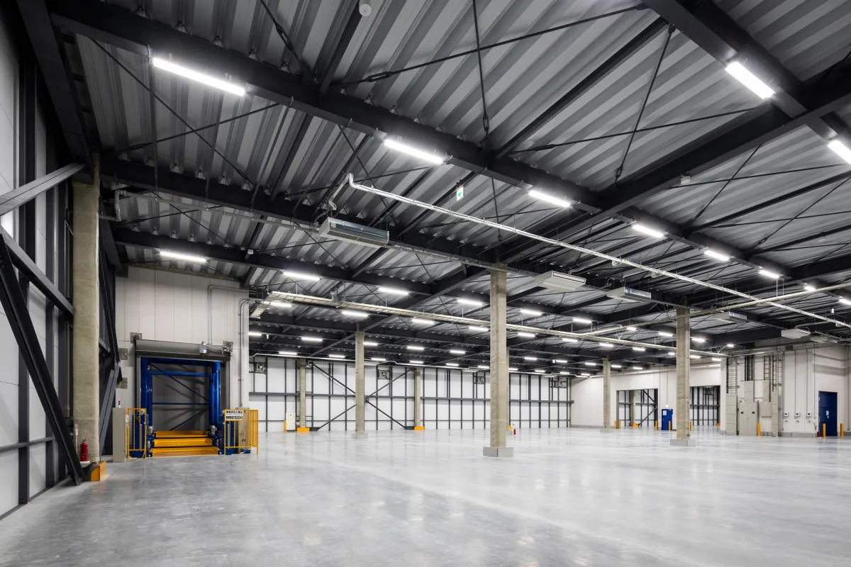 センター内には防火シャッターが電動式で設置されており、安全対策も万全です。このような設備は、流通加工室としても利用され、様々な業務に対応できる柔軟性を持っています。