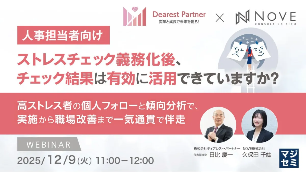 この機会にぜひ参加し、ストレスチェック制度の実効性を高める方法を学んでみませんか?