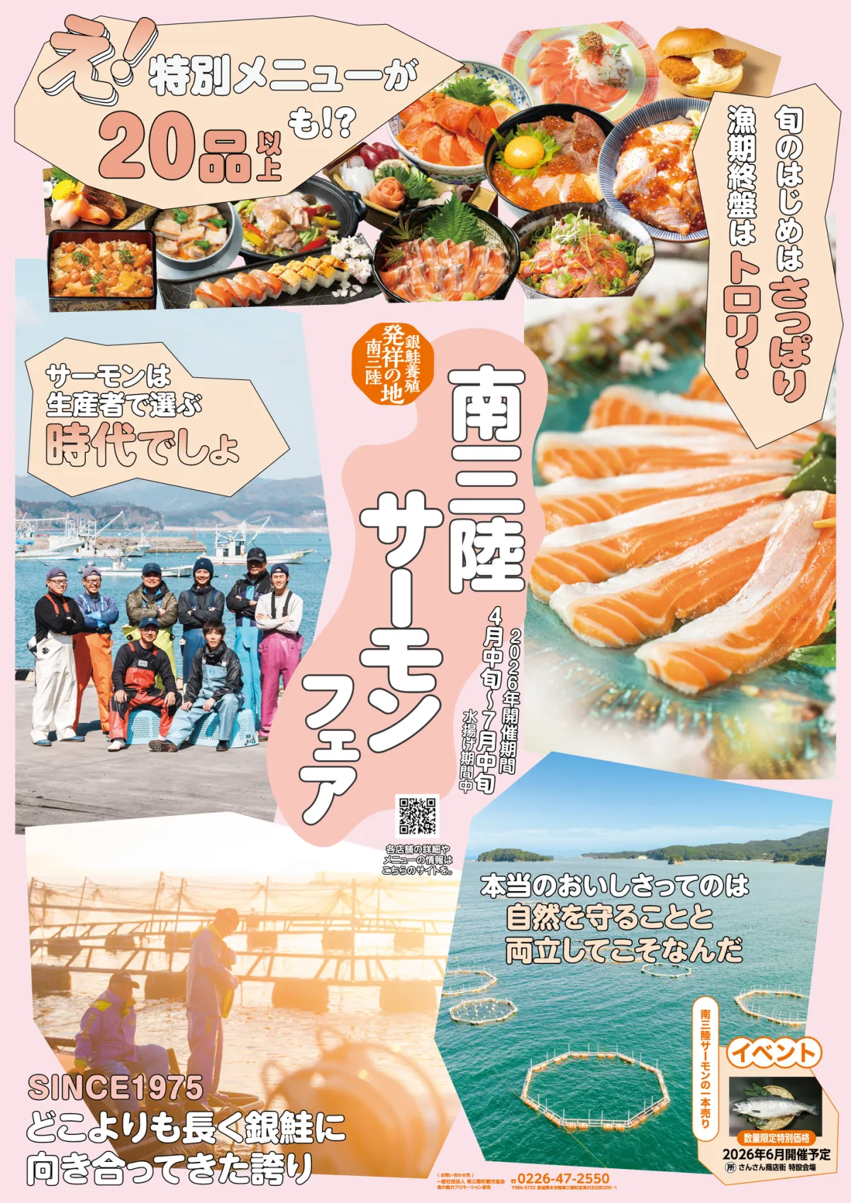 南三陸町が誇る“南三陸サーモン”、今年もこの地域の旬の味覚を楽しむ「南三陸サーモンフェア2026」が4月24日に始まります。この特別なフェアは、南三陸町を代表するブランド銀鮭を、町内の飲食店や宿泊施設で多彩なメニューとして楽しめる貴重な機会です。