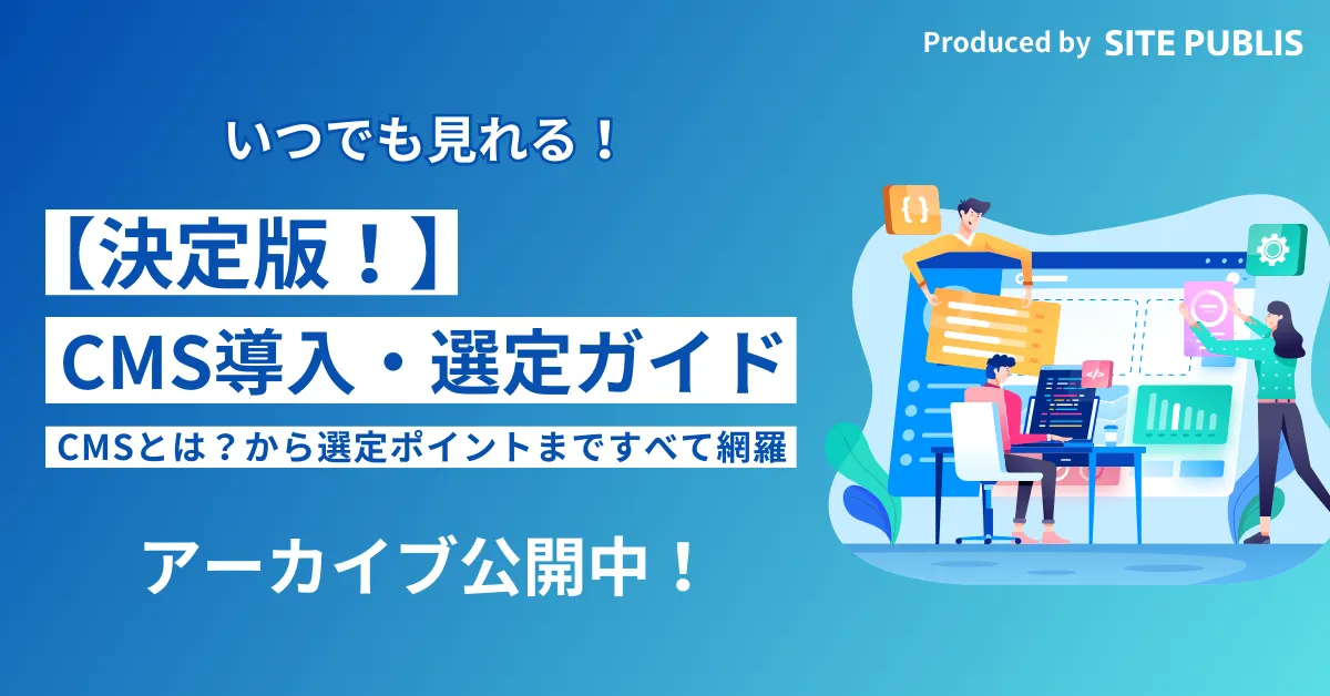 株式会社サイト・パブリスでは、CMSの導入やリプレイスを検討している方々のために、無料のセミナーアーカイブを公開しました。これらのセミナーは「CMS導入・選定ガイド」と「使いやすいCMSの秘密」という2本で構成されており、興味のある部分を好きな時に視聴できるメリットがあります。