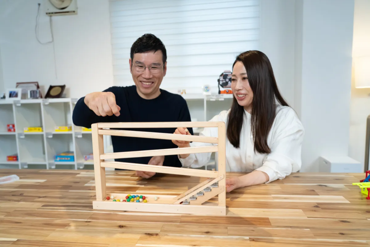 この特別なお店は、おもちゃインストラクターと、言語聴覚士としての資格を持つ奥様の二人三脚によって運営されています。おもちゃに関する提案を行う夫と、言葉や発達にまつわるアドバイスを提供する妻が協力し合うことで、遊びの中から子どもたちの個性や得意な部分を見出していくことに力を注いでいます。この夫婦の専門的な視点が、TAIKO STOREの強みとなっています。