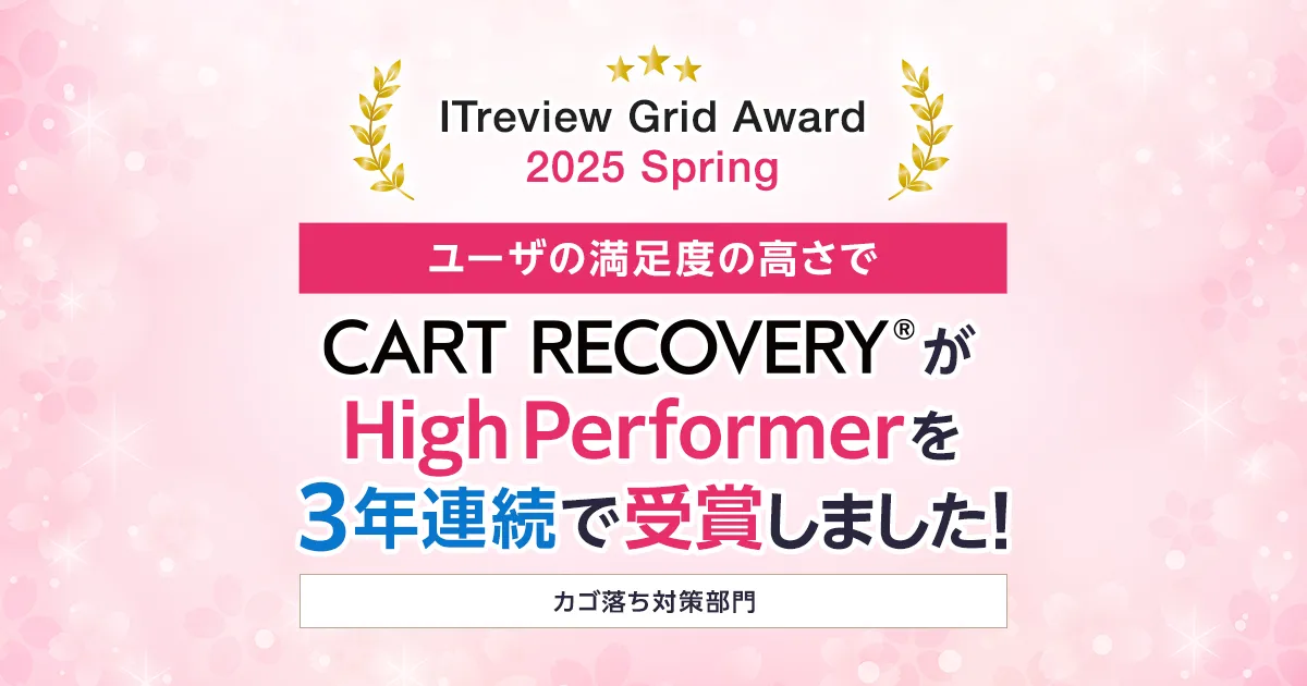 「ITreview Grid Award」は、リアルユーザーによるレビューを基に顧客満足度や市場での認知度を把握し、優れた製品を表彰するプラットフォームです。2025年4月発表の同アワードでは、約13.8万件のレビューが集計され、候補となる製品が選出されました。「CART RECOVERY®」はその中で「High Performer」として評価され、注目の製品としてさらに認知を広げることでしょう。