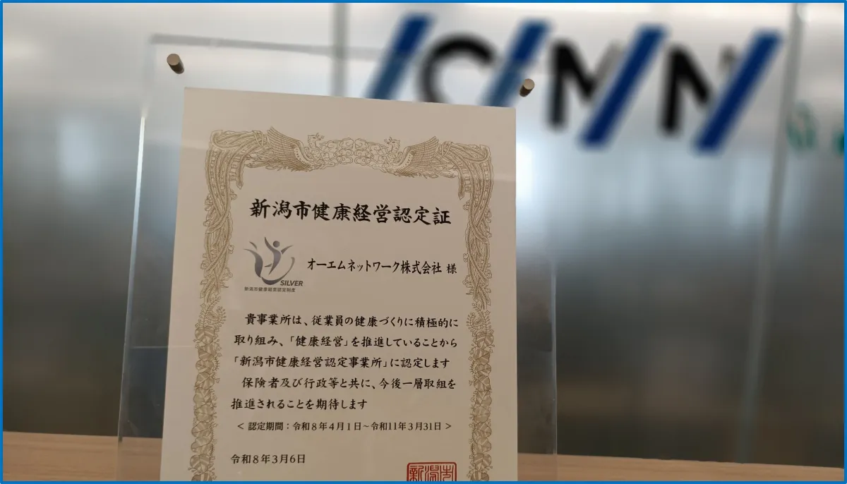 新潟市に本社を構えるオーエムネットワーク株式会社が、2026年4月1日付で新潟市健康経営認定事務所のシルバークラスに昇格しました。この認定は、同社が行ってきた社員の心身の健康支援に向けた継続的な取り組みが評価された結果です。社員が安心して働ける環境づくりにどう取り組んでいるのか、その詳細を探ります。