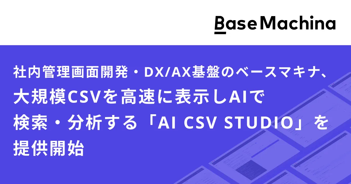 株式会社ベースマキナが新しく提供を開始した「AI CSV STUDIO」は、特にビジネスの現場で高く評価されています。このツールは、大量のCSVデータを迅速に検索、編集、分析、そして可視化する能力を持ち、高い利便性を企業に提供します。