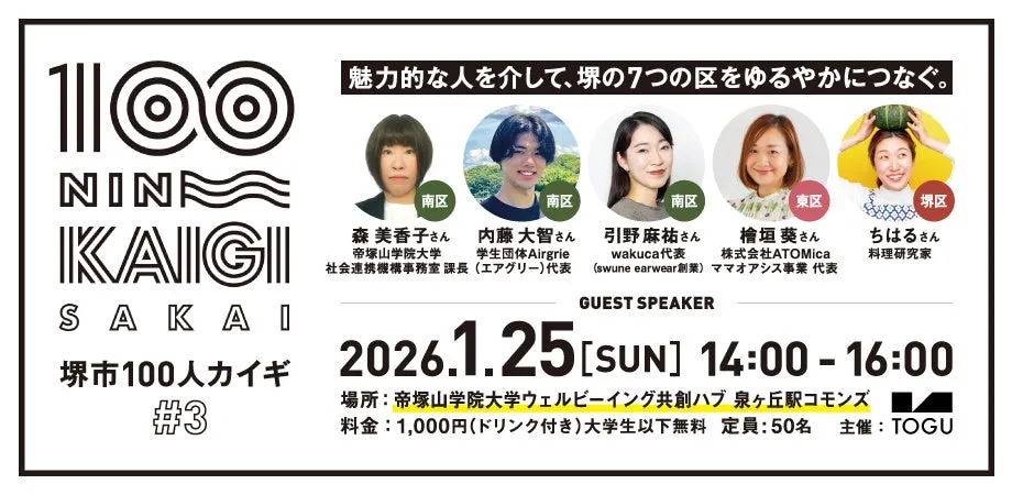 堺市で根付く交流と学びの場「堺市100人カイギ」は、参加者が各々の思いを語ることで新しいコミュニティを築くイベントです。2026年1月25日(日)に、泉ヶ丘の「帝塚山学院大学ウェルビーイング共創ハブ」にて、待望の第3回目を迎えます。このイベントでは、参加者が様々なストーリーに触れ、地元の人々とのつながりを強化する貴重な機会となります。