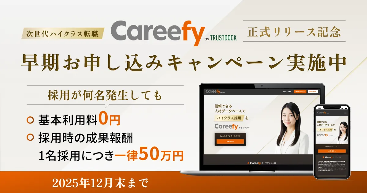 株式会社TRUSTDOCKが展開するダイレクトスカウトサービス「Careefy」(キャリファイ)が、ついに正式にリリースされました。2025年10月2日から求人企業やヘッドハンター向けの機能も提供されるようになり、今後の採用活動を大きく変える可能性を秘めています。