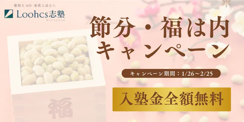 総合型選抜の受験を控えた皆さんに朗報です。ルークス志塾では、2026年の節分に合わせて「福は内キャンペーン」を実施し、所定の条件を満たした方が入塾金を全額免除となる取り組みを始めました。この機会を活かし、早期の受験対策を図りましょう。