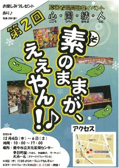 豊中市は、障害者週間に合わせて啓発イベント「素のままが、ええやん!♪」を豊中市立文化芸術センターで実施します。このイベントは、障害のある人とない人が共に集い、出会い、考えることで相互理解を深めることを目指しています。私たちが住む社会には、さまざまな背景を持つ人々がいます。その中でも、障害を持つ方々には特有の経験があり、彼らの声に触れることで私たち自身が学び、成長できる貴重な機会となるでしょう。