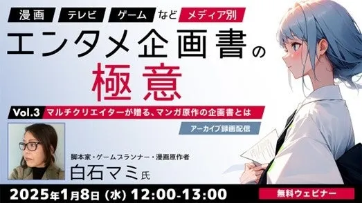 エンターテイメント業界への興味が高まる中で、特に新たにクリエイティブな仕事を目指す方々にとって、マンガ原作やテレビ、ゲームといったメディアでの企画書作成は重要です。2025年1月8日(水)、株式会社クリーク・アンド・リバー社(C&R社)は、オンラインセミナー「『漫画』『TV』『ゲーム』など、メディア別エンタメ企画書の極意 Vol.3」を無料で配信します。このセミナーは、エンタメ業界での業務を希望している方や、既に活動されているクリエイターの皆さまにも大変役立つ内容となっています。