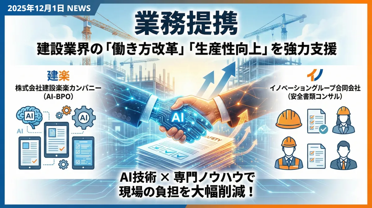 建設業界では現在、多くの課題が浮上しています。特に安全書類の業務負荷が増大しており、これを解決するために、株式会社建設楽楽カンパニー、及びイノベーショングループ合同会社が新たに業務提携を締結しました。この提携は、建設業界の効率化に寄与することを目指しています。