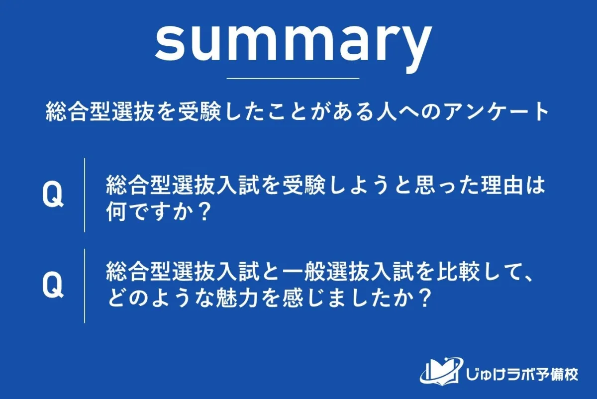 今回の調査から、総合型選抜入試は受験生が抱える多様なニーズに応えるものとして、ますます重要性を増していることが分かりました。自己の強みをアピールする機会が増え、早期に合格を決定できる安心感が得られ、一般的には難しい大学への挑戦が可能になるという3つの大きなテーマがありました。受験生の意識は、学力試験中心の従来の方法から、より戦略的な進学を目指すものへとシフトしているのです。