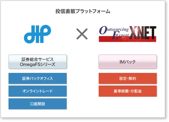 エックスネットが手を組み、新たに提供し始めた投信計理業務用サービス「IMバック」と証券総合サービス「OmegaFSシリーズ」の直結機能です。これにより、投信直販を行う投信委託会社へ、よりリーズナブルで使い勝手の良い選択肢が提供されることになりました。