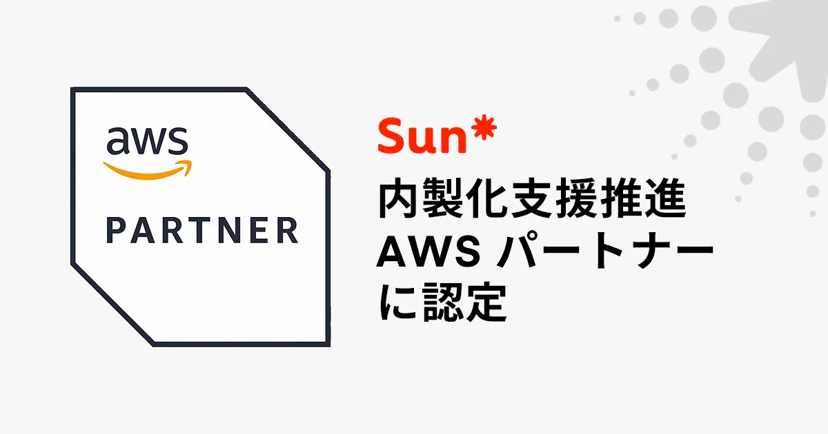株式会社Sun(本社:東京都千代田区、代表取締役:小林 泰平)は、アマゾン ウェブ サービス(AWS)から「内製化支援推進 AWS パートナー」に選ばれたことをお知らせいたします。この認定は、Sun