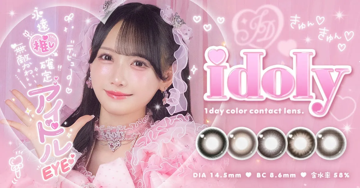 『idoly』のブランドコンセプトは、「このまなざしが、誰かの推しになる」というもの。憧れを追いかける女子たちの気持ちを描き出したこのレンズは、自分の瞳をもっとかわいく見せ、自信を与える一品です。自分の好きな色を身につけることで、心が躍るような瞬間を演出し、可愛い物語を描き出します。
