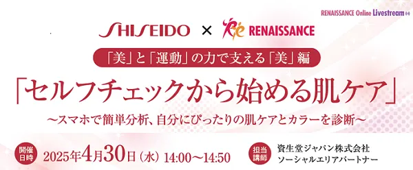 株式会社ルネサンスと資生堂が共催する「セルフチェックから始める肌ケア」セミナーが、2025年4月30日に開催されることが発表されました。このセミナーは、がん患者のクオリティー・オブ・ライフ(QOL)向上を目的としており、特に治療の副作用による肌の悩みに対応しています。