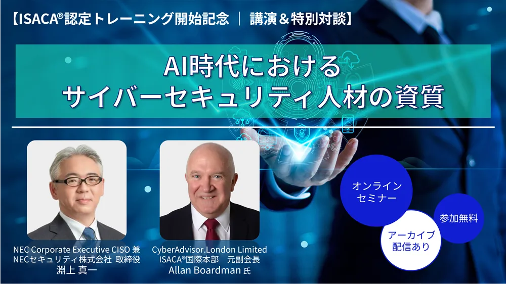 本セミナーでは、ISACAの国際本部元副会長であり、業界の権威であるAllan Boardman氏がメインスピーカーとして登壇します。Boardman氏は、AI時代におけるサイバーセキュリティ人材に求められる資質について、グローバルな観点から説明します。