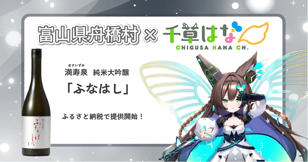 日本一小さな村、富山県舟橋村が注目を集めています。今回はその舟橋村と、人気のバーチャルYouTuber(Vtuber)千草はなとのコラボレーションが実現しました。何と、老舗酒蔵の満寿泉が提供する純米大吟醸「ふなはし」が、ふるさと納税の返礼品として登場するというのです。