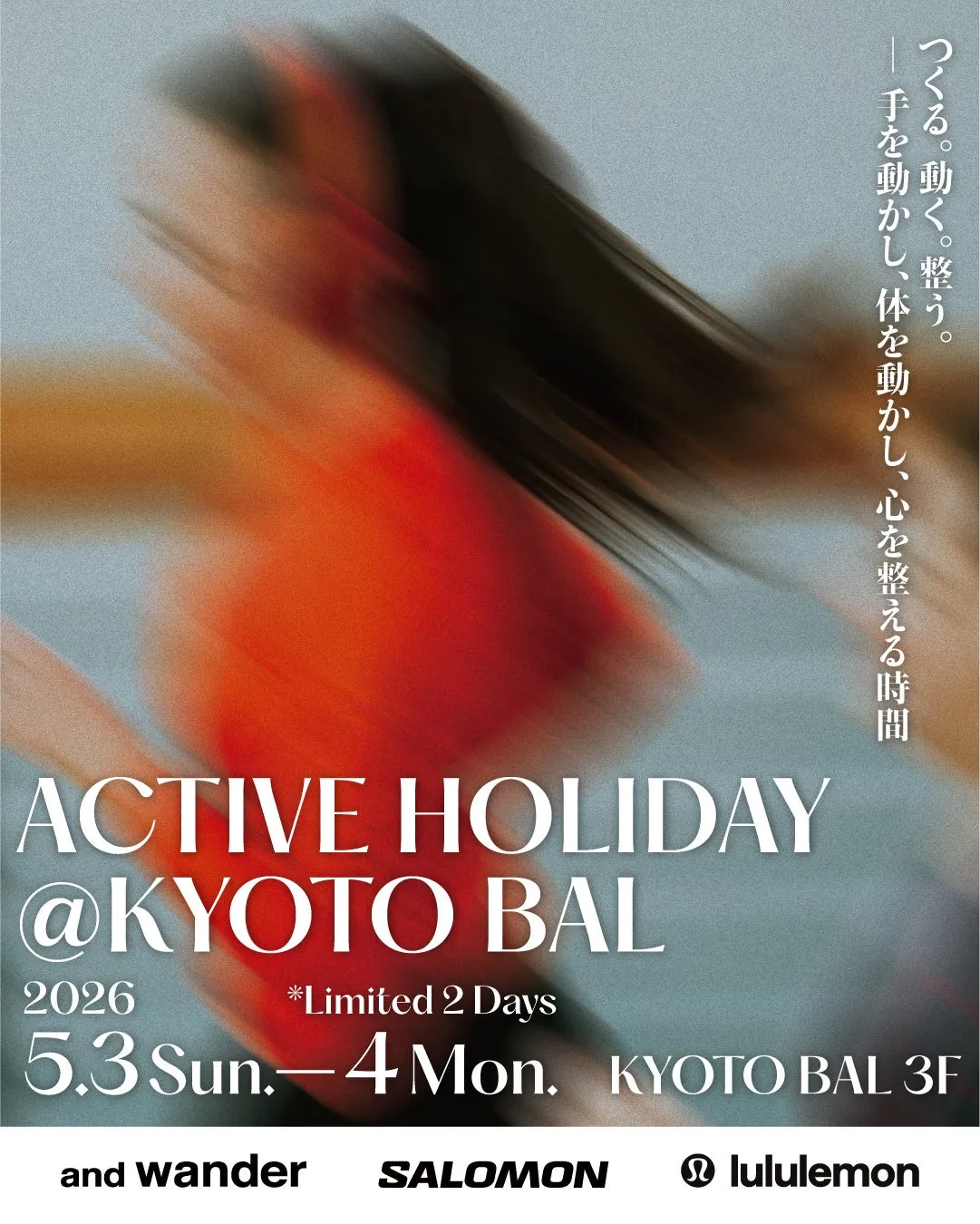 2026年5月3日と4日の2日間、京都市中京区に位置する京都BALで新しいライフスタイルを提案するイベント「ACTIVE HOLIDAY」が開催されます。このイベントは、アウトドア、ランニング、ヨガなど多彩なアクティビティを通じて、都市生活と自然の調和を体験できる機会です。