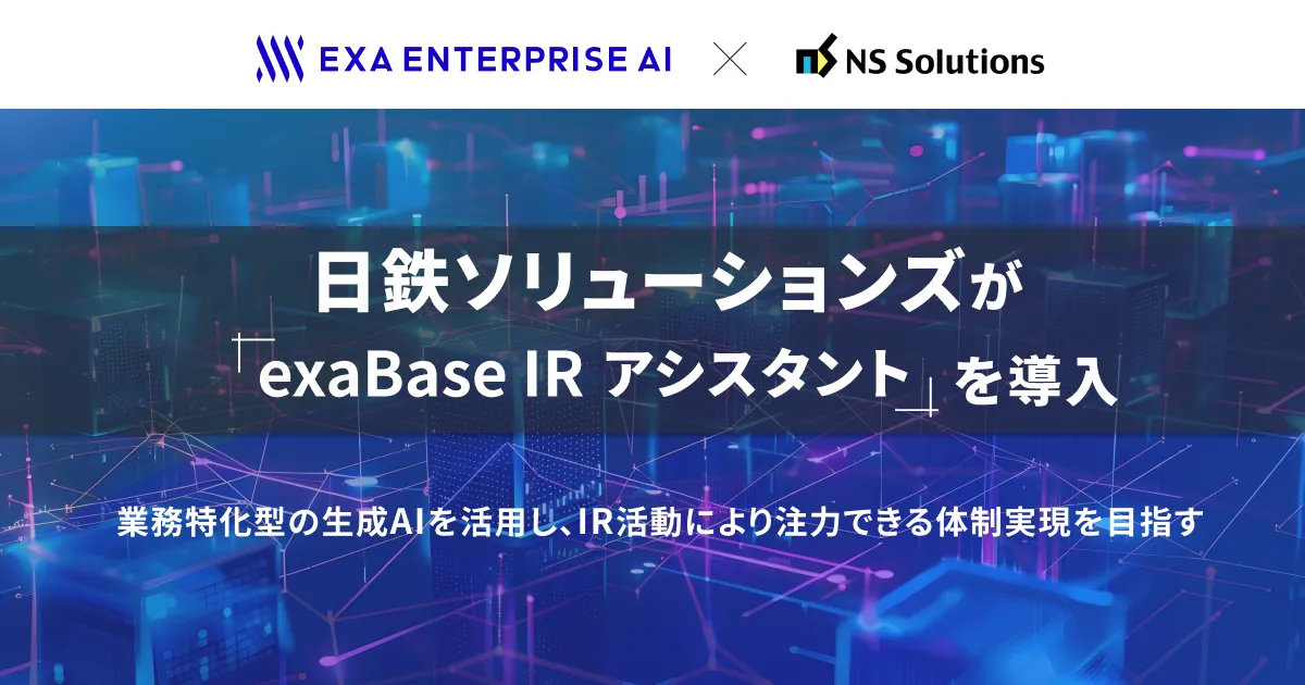 株式会社Exa Enterprise AIが提供する「exaBase IRアシスタント」が日鉄ソリューションズ株式会社(以下、NSSOL)によって導入されました。この新しい業務特化型生成AIサービスは、NSSOLのIR部門で業務のデジタルトランスフォーメーション(DX)を推進し、価値の高い情報を開示する体制を構築する手助けをしています。