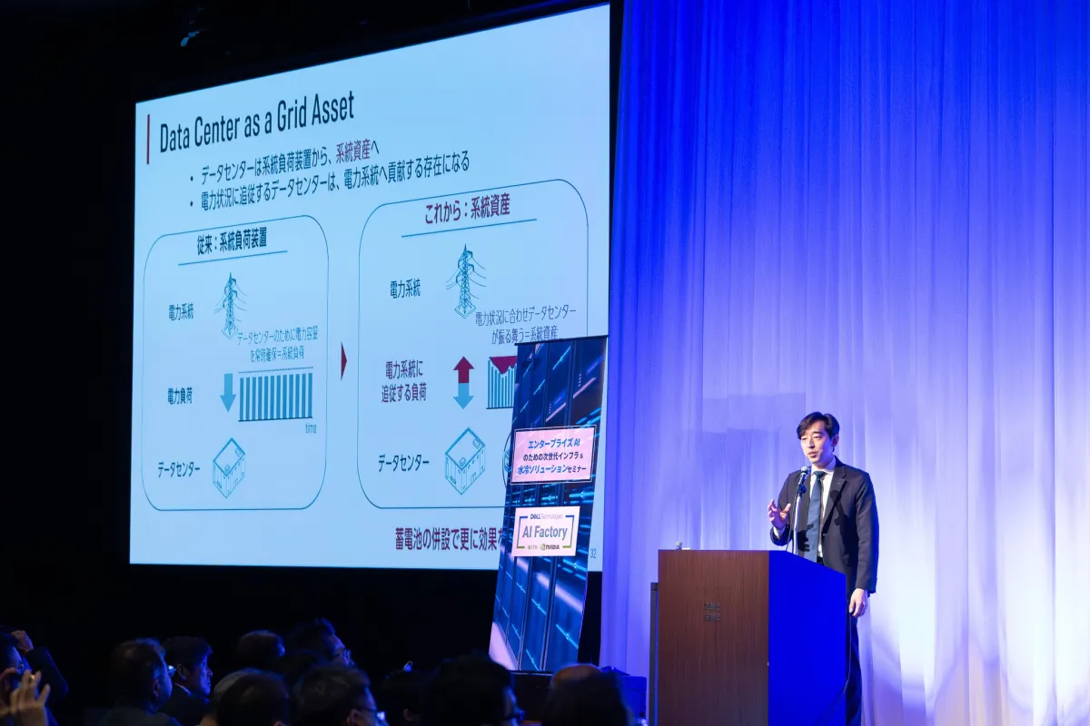 講演の中で、伊藤社長は系統用蓄電システムの知見を活かした「Mega Power DC」という新たなデータセンターのコンセプトを紹介しました。このコンセプトは、蓄電池を前提とした新しいビジネスモデルを構築するもので、エネルギーコストの削減や運用効率の向上を目指しているのです。「ワット×ビット」の融合により、データセンターは安定した電力供給と高い運用効率を両立させることが期待されています。