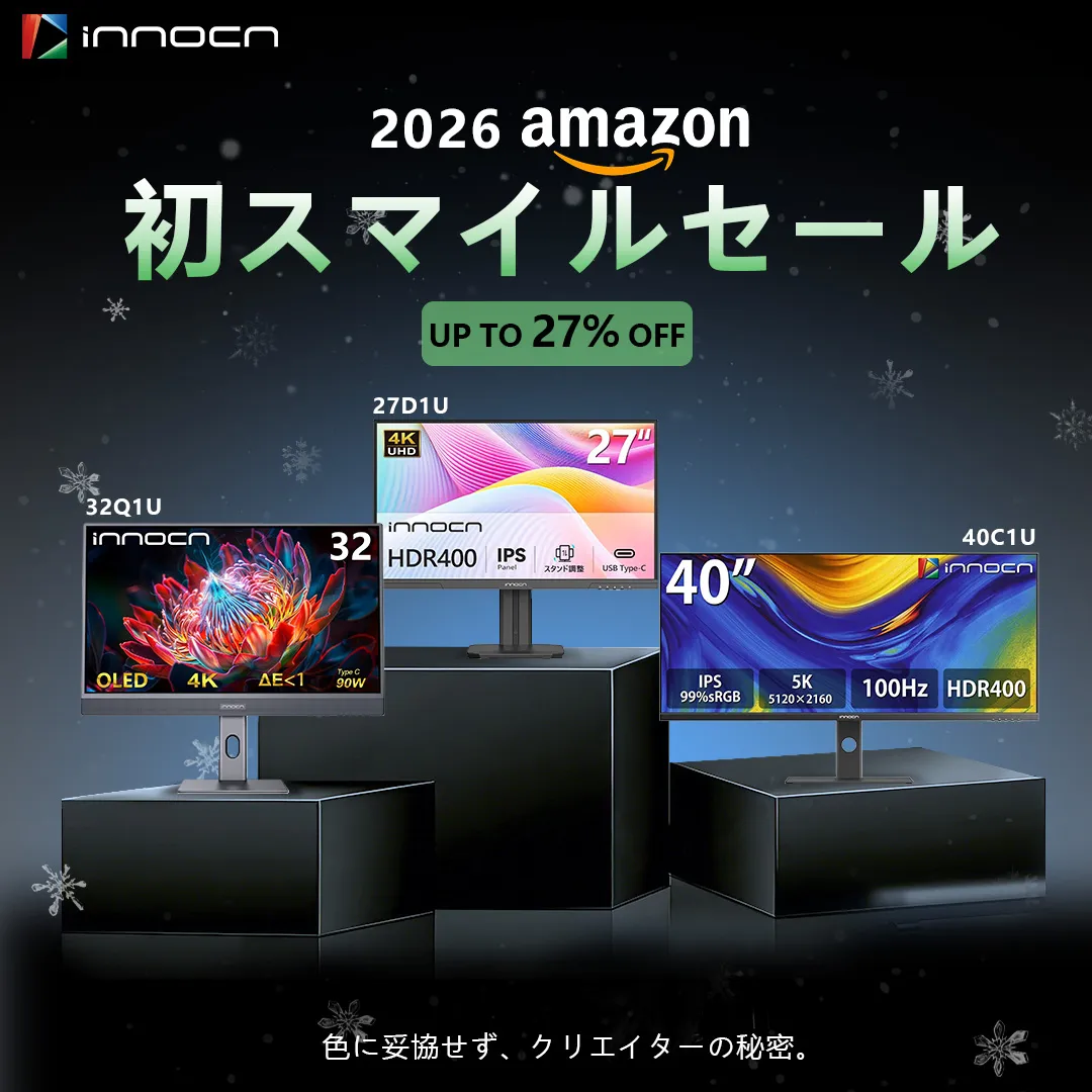 2026年が始まり、クリエイティブな仕事をする皆さんに朗報です! INNOCNのデザイン向けモニターが新春の特別セールで最大27%OFFとなります。この機会に、正確な色再現と安定した表示品質を誇るモニターを手に入れましょう。