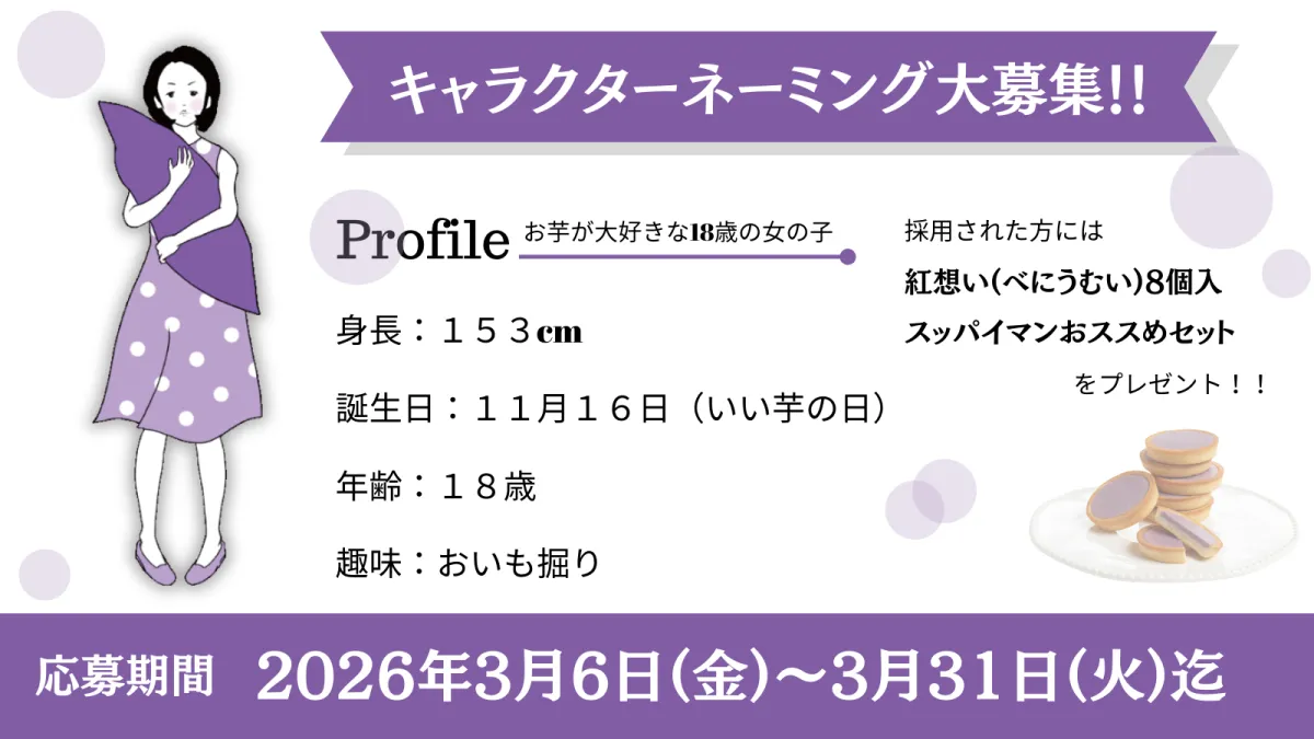 この新商品に関連して、上間菓子店はパッケージに描かれている少女キャラクターの名前を一般から募集しています。このキャラクターは「お芋が大好きな女の子」というコンセプトのもと作られており、愛らしい外見と親しみやすさを兼ね備えています。
