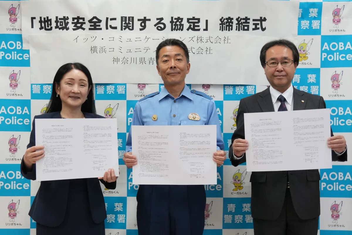 2023年5月28日、イッツ・コミュニケーションズ株式会社(イッツコム)と横浜コミュニティ放送株式会社(FMサルース)は、神奈川県青葉警察署と「地域安全に関する協定」を締結しました。この協定は、青葉区の住民が安心して暮らせる社会の実現を目的とし、特殊詐欺や交通事故防止に向けた連携を強化していくものです。