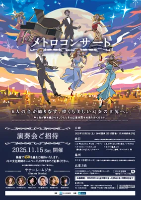 公益財団法人メトロ文化財団と東京地下鉄株式会社が共催する「メトロコンサート~6人の音が織りなす、儚くも美しい幻奏の世界へ~」が、2025年11月15日(土)に開催されることが決定しました。これは、音楽文化の普及を目的とした文化活動の一環として、年に一度行われる特別なイベントです。