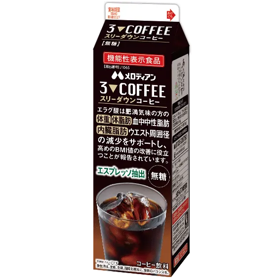 メロディアン株式会社が新たに発売する「スリーダウンコーヒー」は、1000mlのストレートタイプで、毎日の健康を気にかける方にぴったりの飲料です。本商品は、機能性表示食品として、体重や体脂肪、血中中性脂肪などの減少をサポートするエラグ酸を含んでいます。