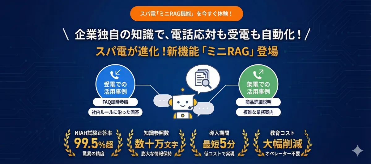 カイタク株式会社が発表した新機能「ミニRAG」を搭載したAIソリューション「スパ電」が、企業の電話業務に革命をもたらそうとしています。コールセンター業務の現場で抱えている教育や品質のばらつき、属人化の課題を根本から解決するこの新機能は、2025年12月16日から利用可能になります。