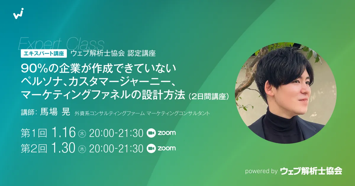 マーケティング戦略の成功には、しっかりとしたファネル設計が欠かせません。2025年1月にウェブ解析士協会主催のオンライン講座では、外資系企業での豊富なコンサルティング経験を持つ馬場晃氏が登壇し、初心者でも実践的に学べる内容を提供します。