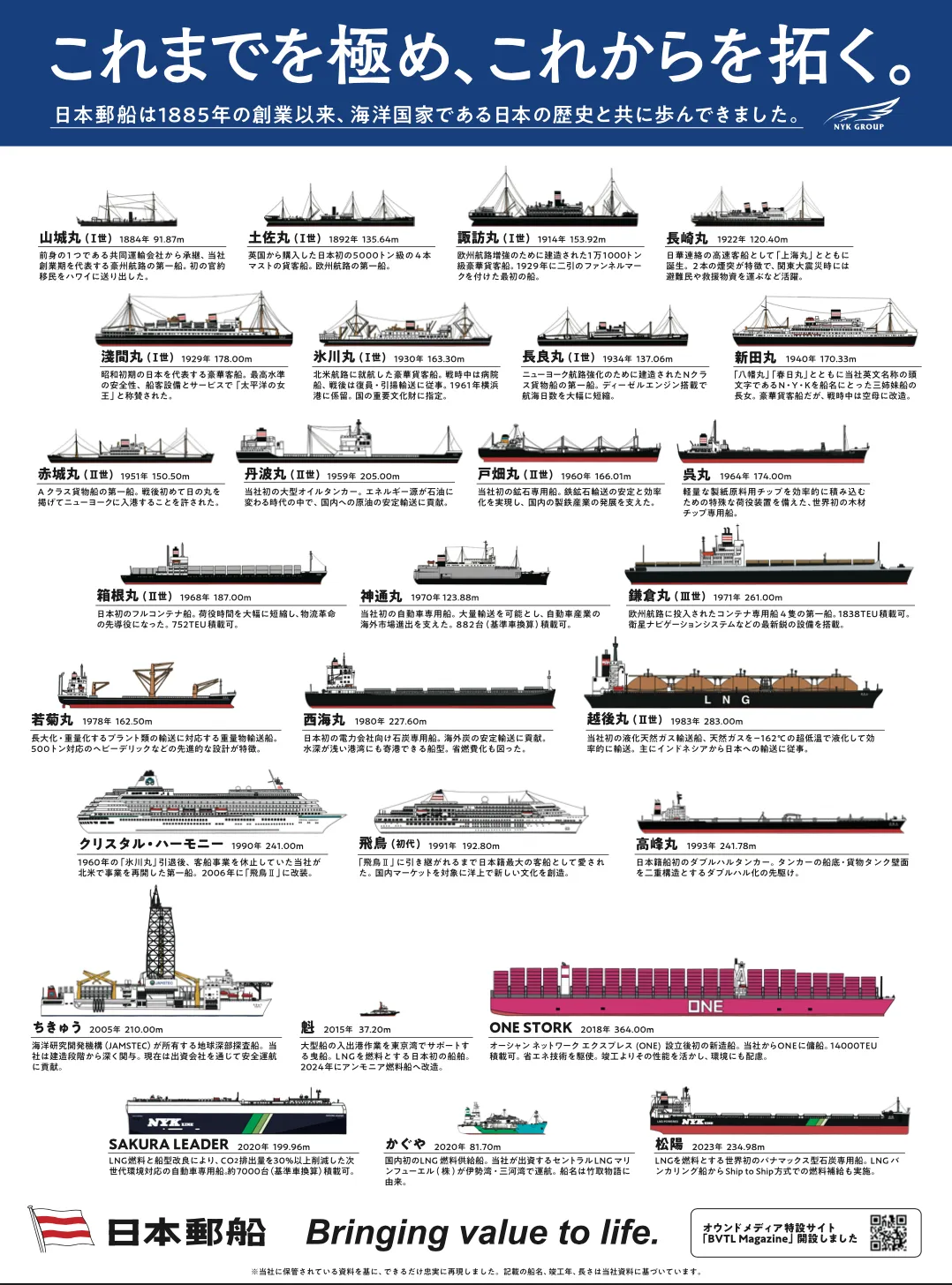 受賞作品は、2025年3月25日に単発掲載された日本郵船の歴史を表現したもので、主要な船舶27隻を描いたイラストが特徴です。これらの船には、それぞれ造船当時の時代背景及び企業のビジョンや想いが込められたテキストが添えられています。