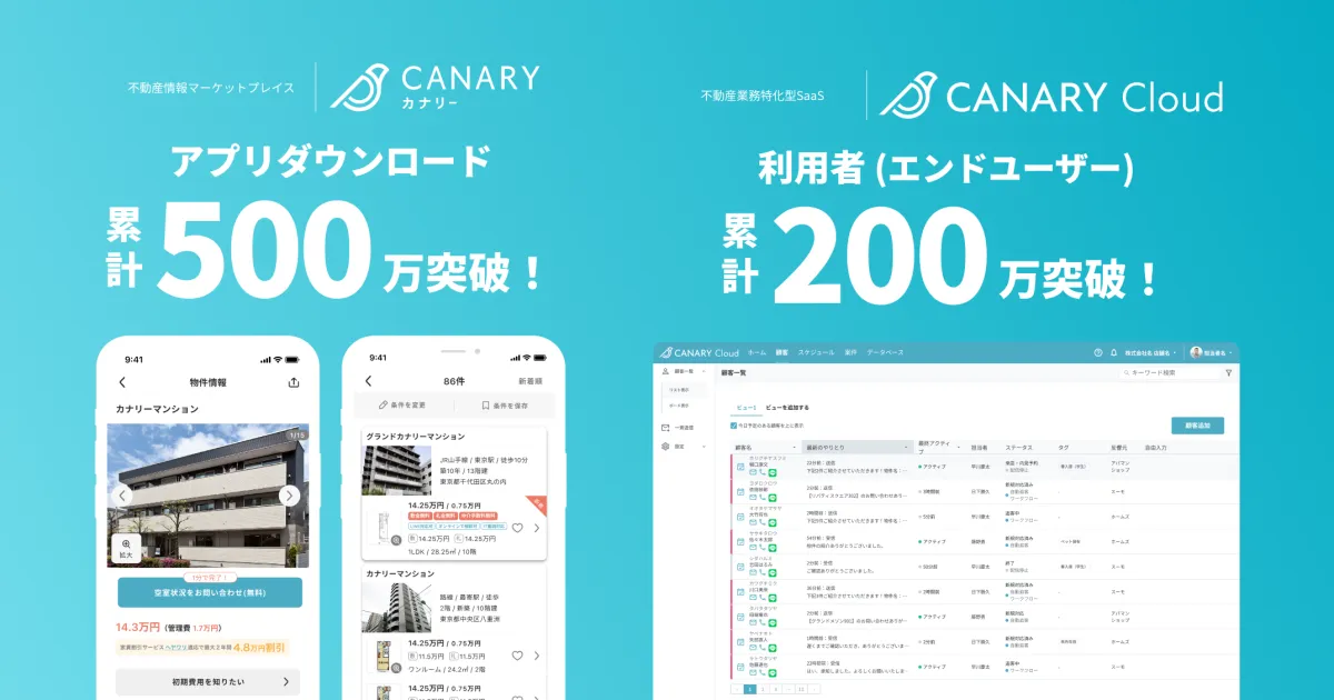 不動産テック企業である株式会社カナリーが、2025年4月に不動産情報アプリ「カナリー(CANARY)」の累計ダウンロード数が500万件を超え、不動産業務特化型SaaS「カナリークラウド(CANARY Cloud)」の利用者数が200万人に達したことを発表しました。この成功は、業界のデジタルシフトを推進する同社の努力の賜物です。