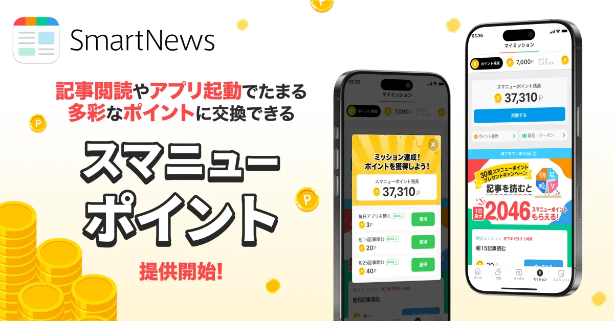 スマートニュース株式会社(東京都渋谷区、代表取締役CEO:浜本階生)が、9月29日に発表した「スマニューポイント」は、ニュースアプリ「SmartNews」に新たに導入されたポイントプログラムです。このプログラムでは、記事を読んだりアプリを起動するだけでポイントを獲得できるようになり、それらのポイントは10以上の異なるサービスに交換可能です。この新機能により、ユーザーはニュースを楽しみながら、同時にポイントを獲得し、さまざまな「ポイ活」も楽しめるようになります。
