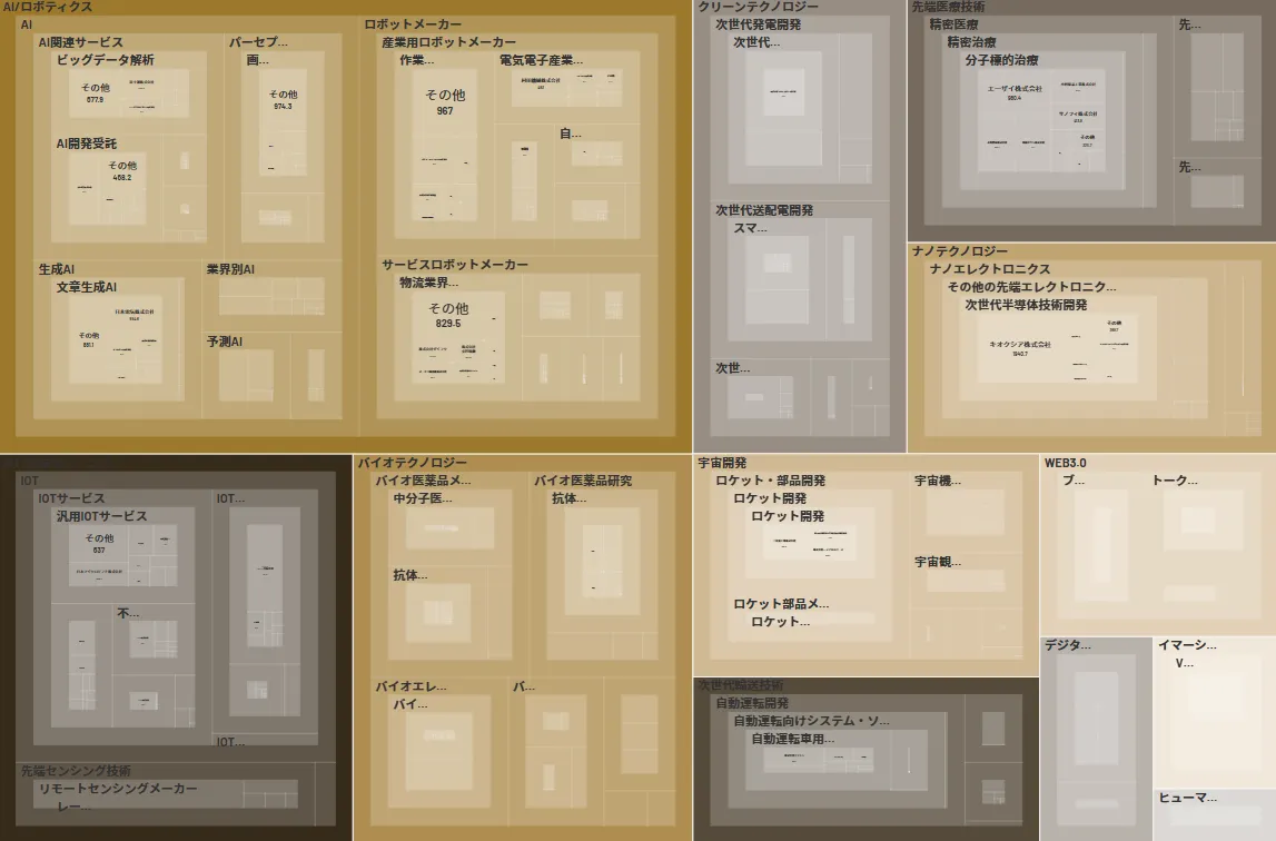 新しく公開されたカオスマップは、各企業の位置づけや市場動向を詳細に把握するための重要なツールです。カオスマップには、ナノテクノロジー、宇宙開発、バイオテクノロジーなど、さまざまな分野が展示されており、それぞれの市場構造や主要企業を視覚的に表現しています。これにより、起業家や投資者は、各自のビジネス戦略を立てやすくなります。