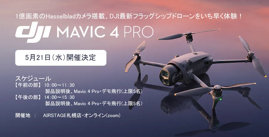 株式会社システムファイブは、2025年5月21日(水曜日)にAIRSTAGE札幌店で「DJI Mavic 4 Pro 実機紹介・デモ飛行イベント」を共同開催します。このイベントは、最新のドローン技術を学びたい方々にとって絶好のチャンスです。