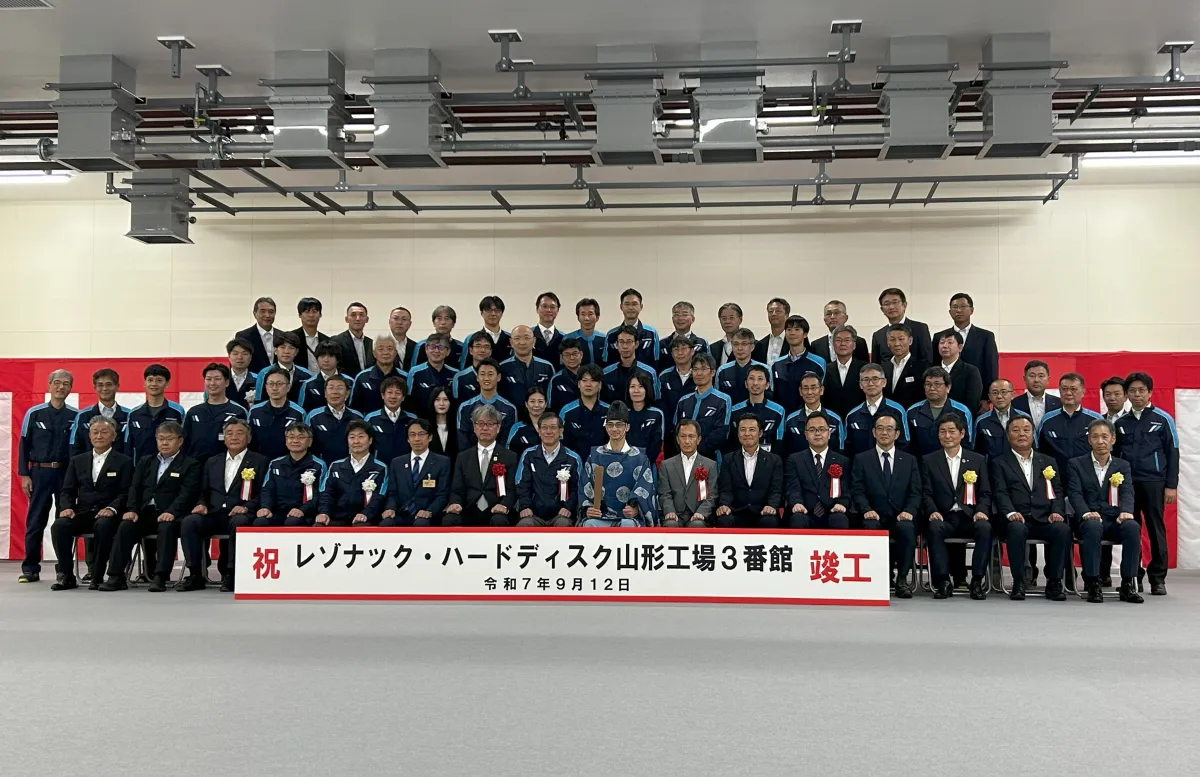竣工式には、地元の鈴木敬一副市長をはじめ、山形県やその他の関係者が出席し、建屋の完成を祝いました。代表取締役社長の髙橋秀仁氏やデバイスソリューション事業部の武田真人部長も参加し、今後の安全な操業への祈りを捧げました。