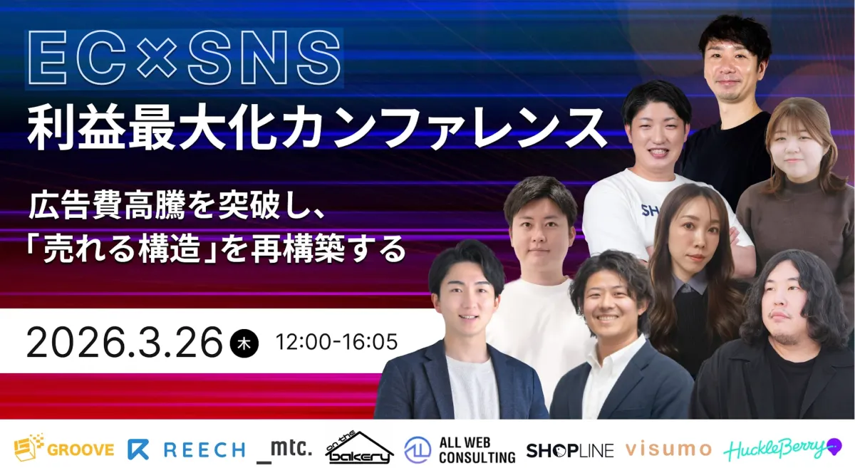 2026年3月26日(木)、株式会社on the bakeryが主催される「EC×SNS利益最大化カンファレンス」にオンラインで参加します。このイベントは、EC事業者や販売施策の担当者を対象にしたもので、参加費は無料。現在のEC環境における課題を解決するための具体的な施策について学ぶことができます。