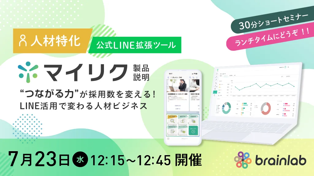 株式会社ブレイン・ラボが主催するショートセミナーが、2025年7月23日(水)と24日(木)の二日間、オンラインで開催されることになりました。このセミナーは、「マイリク」というLINE活用ツールに焦点を当てており、採用活動や定着支援における新たな方法を学ぶ絶好の機会です。