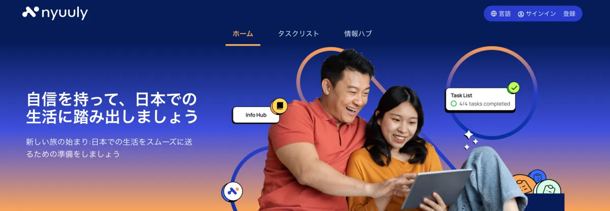 Nyuulyプラットフォームは、音声やデータプランの選定、日本の文化的な特性の理解、さらには日々の生活に必要な情報やリソースを提供します。どんな新しい環境においても有用なヒントや、生活に欠かせないタスクの整理を手助けすることで、外国人が日本を第二の故郷と感じられる手助けをします。