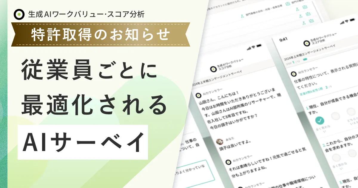 東京都港区を拠点に置くデフィデ株式会社は、革新的なAIエンゲージメントサーベイ「生成AIワークバリュー・スコア分析」(JOB Scope)の特許を取得したことを発表しました。特許番号第7663188号で登録されたこの技術は、従業員の属性情報や会社情報を基に、AIが各従業員向けに特別にカスタマイズされたサーベイの質問を自動生成できる機能を持っています。