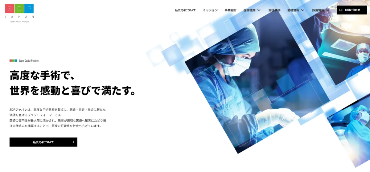 SDPジャパンは、医療機関のプロデュースに特化し、「高度な手術で、世界を感動と喜びで満たす」というミッションを掲げています。主な事業は、人工関節や脊椎、不整脈に関する専門分野における医療機関のサポートです。今回のリニューアルでは、同社の支援内容やビジョンをより深く理解してもらうため、デザインやコンテンツを一新しました。