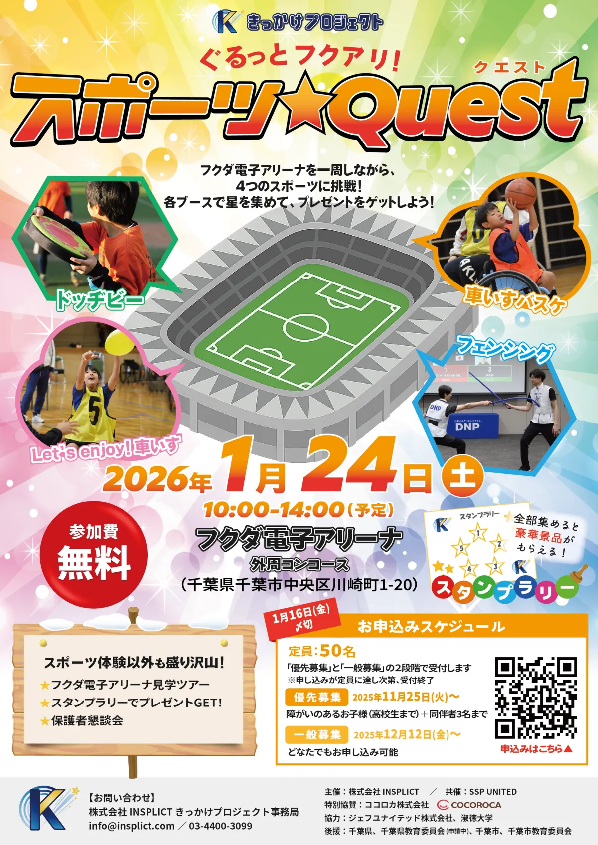 2026年1月24日(土)、千葉市に位置するフクダ電子アリーナにて、障がいの有無を超えて楽しむことができるスポーツイベント「ぐるっとフクアリ!スポーツ★Quest」が開催されます。このイベントは、参加者が自由に選んで楽しむことができる4つのスポーツ体験ブースを設けており、特に子どもたちが新しいスポーツに挑戦できる機会が用意されています。